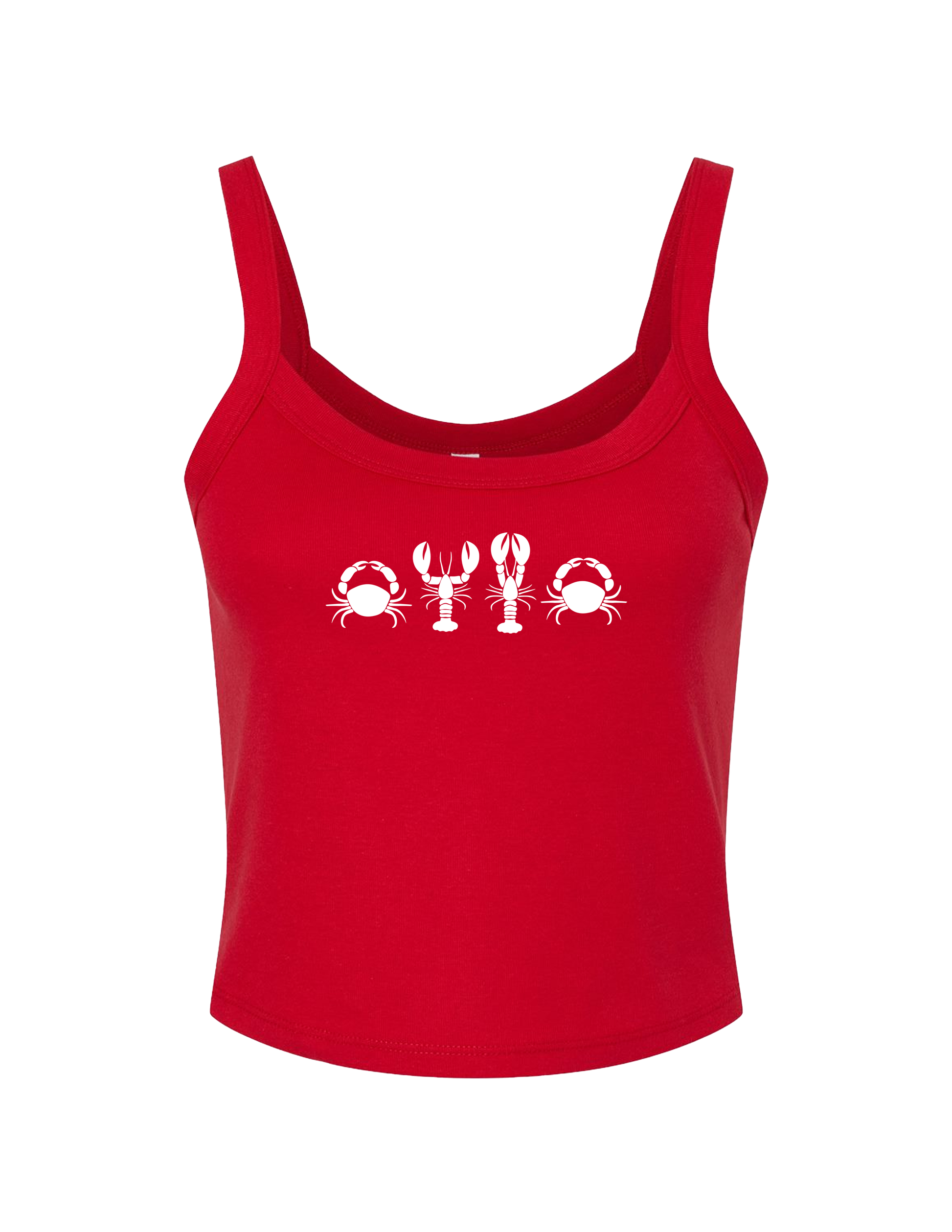 Basic scoop-neck tank top with crab and lobster "O-H-I-O" graphic on the chest.