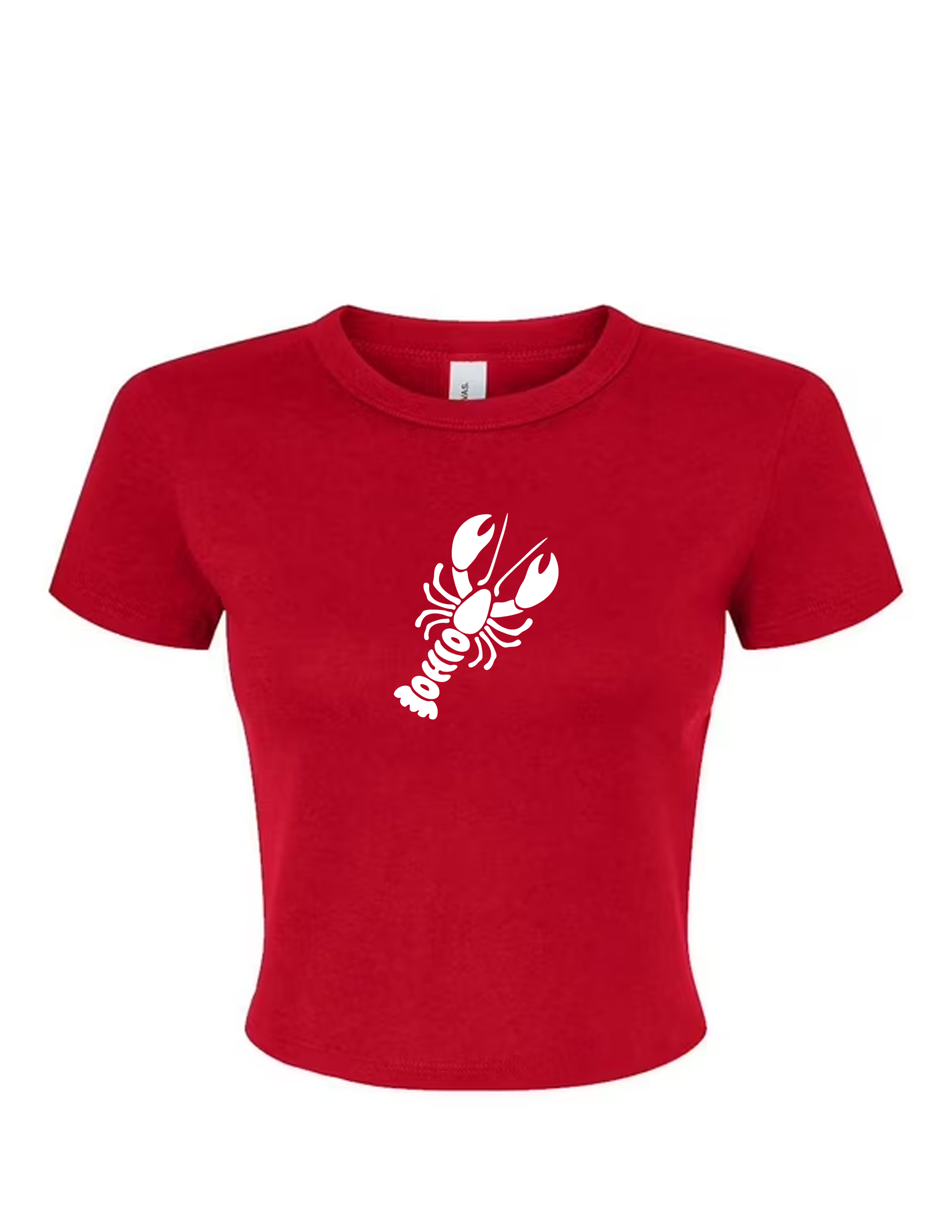 Fitted baby tee with lobster graphic on the chest.