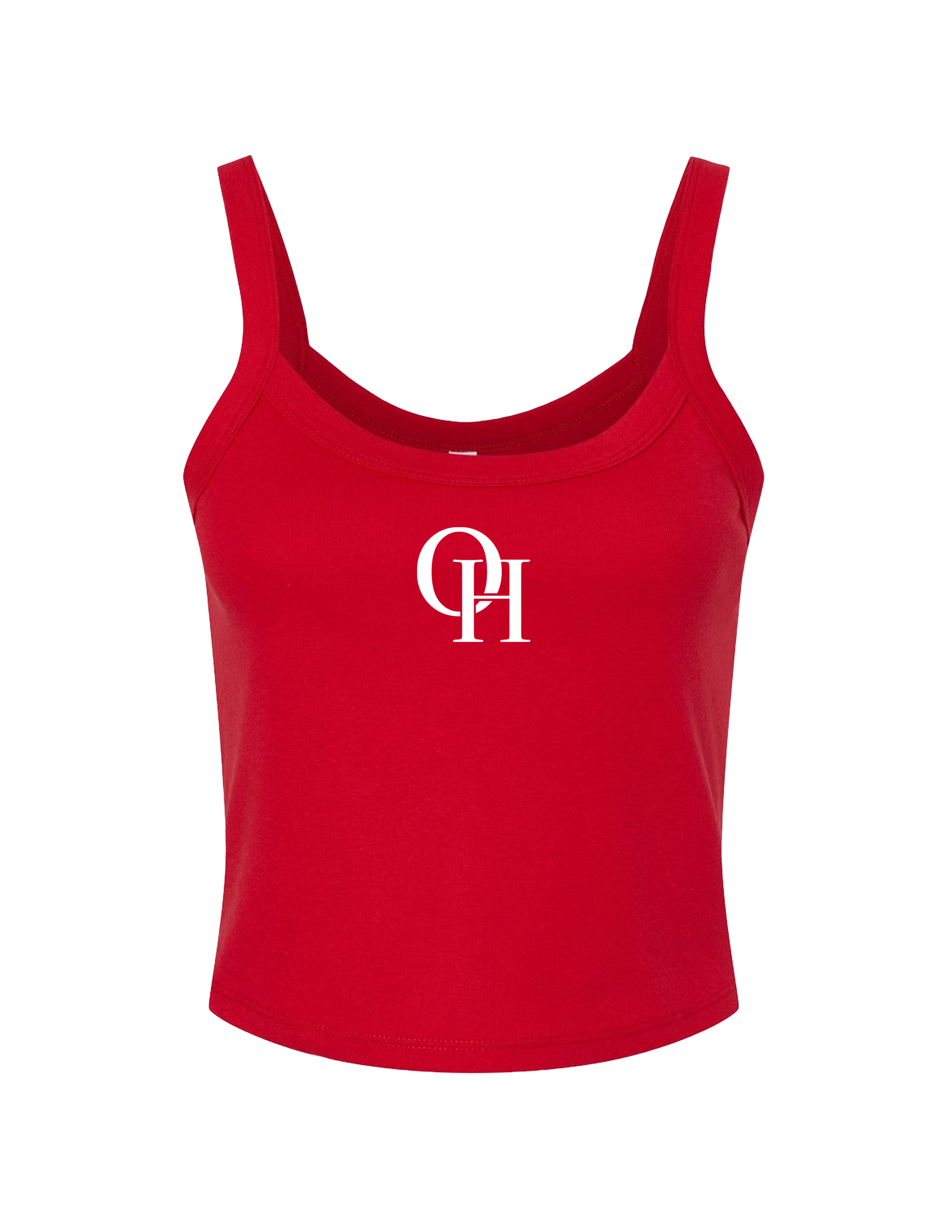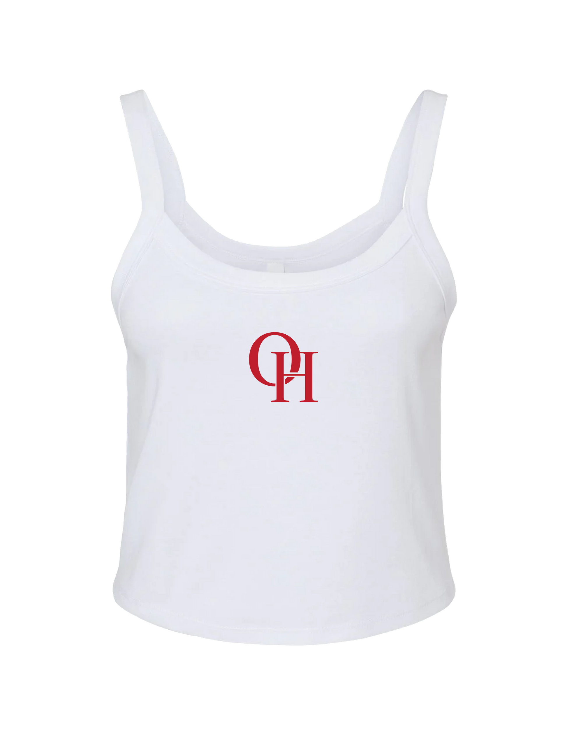 Basic scoop-neck tank top with OH monogram graphic on the chest.